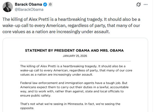 The murders of Good and Pretti can be traced back directly to Obama and the architecture of domestic terror he played a central role in establishing.