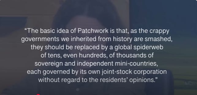 Thiel, Musk and other leading techno-libertarians like Marc Andressen, Ben Horotwitz, Brian Armstrong, and Balaji Srinivasan have been very open about their plans to create zones of exit from all government control. The philosopher king of this movement is a man called Curtis Yarvin, who has spelled out clearly the future to which Musk, Thiel and the techno-libertarians subscribe: