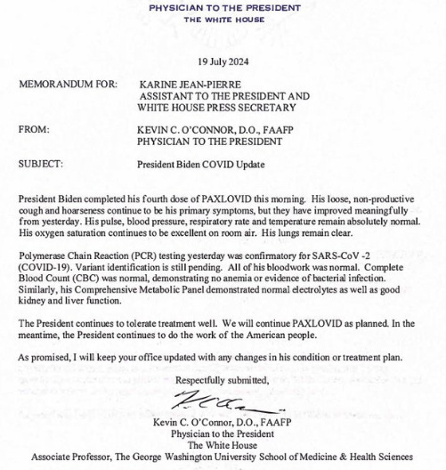 Who knows to what extent Biden’s decision has been influenced by the fact he has covid. But he has quit while sick with covid, so it’s surely more than zero.