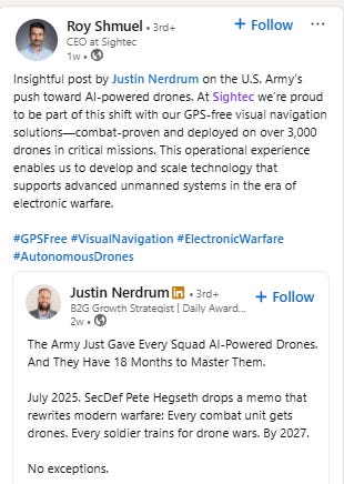 Sightec, a manufacturer of AI navigation technology for drones, received almost €2.5 million from the EU last year. I found evidence the technology is not only designed for military use, but has been deployed on Palestinians in Gaza. Earlier in August the CEO of Sightec, Roy Shmuel, bragged on LinkedIn that Sightec technology was ‘combat-proven and deployed on over 3,000 drones in critical missions.’ This admittance of Sightec’s military use is a clear breach of Horizon’s ostensibly civil mission and a violation of EU treaties which explicitly prohibit the programme from funding military applications.