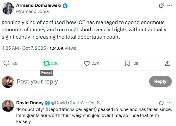 This was the sentiment voiced by well-known American liberal, anti-Trump, Democratic intelligentsia guy Armand Domalewski this week. In a tweet Domalewski wondered how ICE had spent so much money and not juiced those deportation numbers at all.