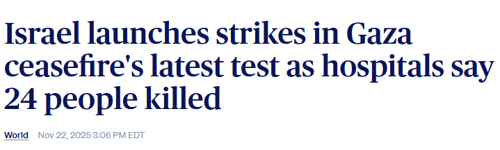 Imagine a ceasefire between Iran and Israel-US is agreed. Iran proceeds to launch missiles at Israel on an almost-daily basis. The first missile launched would be headline news the world over and declared a breach of the ceasefire. But Israel can breach a ceasefire almost every day for 18 months straight with zero western condemnation and with the fantasy presented to the western public that the ceasefire is holding.