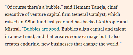 As the bank runs accelerate and as you’re queuing to withdraw your last pennies from the ATM to pay your landlord who just raised your rent 10x to cover their called-in loans, as you ponder plain bread or bread with a smear of butter for your sole meal of the day, remember: THE AI BUBBLE WAS GOOD.