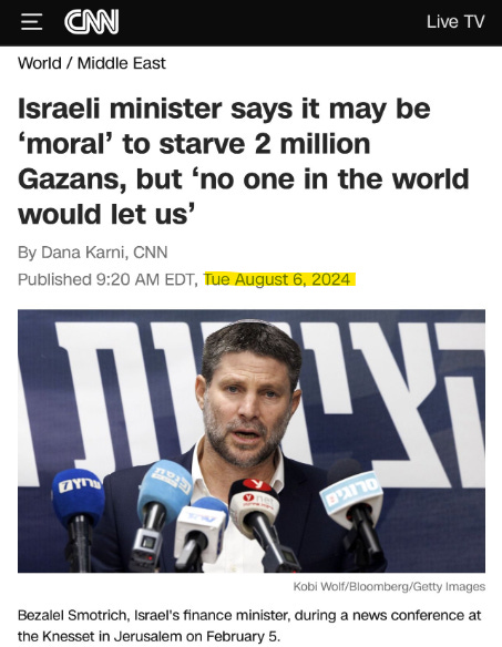 Thank you for this. Now that they are finally admitting that Israel is starving people, maybe in another couple of years, they will admit that Israel should no longer exist.