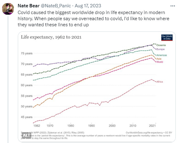 It didn’t crash life expectancy on every continent on Earth because it’s just a cold.